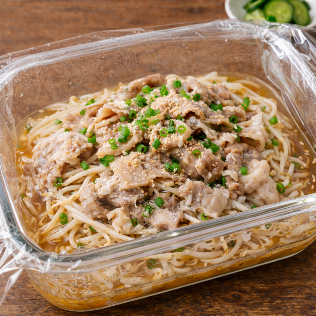 レンジで豚バラもやし蒸し